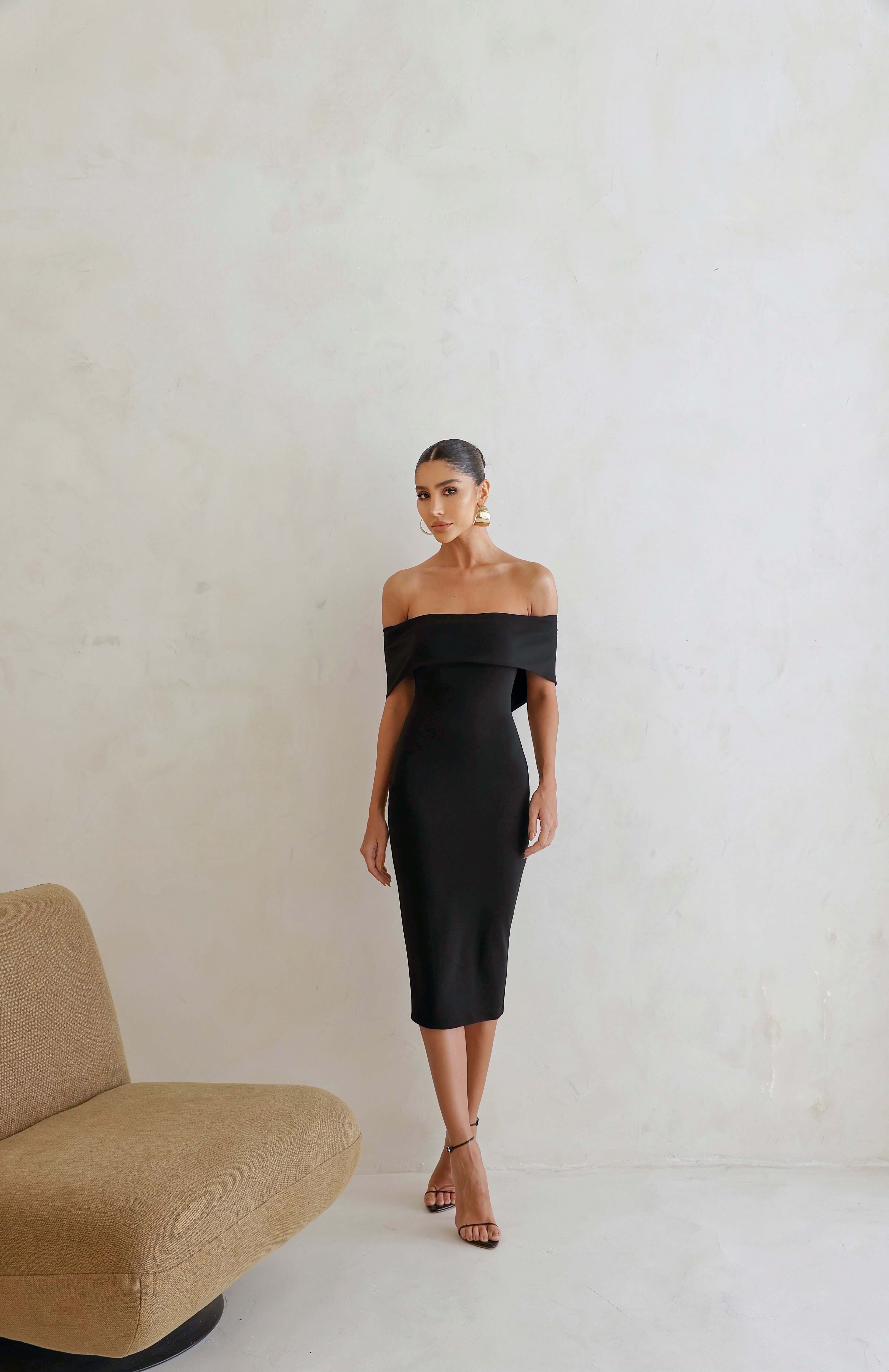 VESTIDO SCUBA OMBRO A OMBRO PRETO